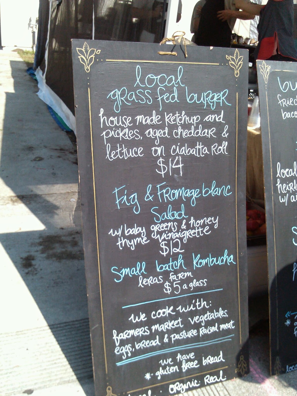 I'm currently on a break from sugar, which prevented me from ordering the baked goods listed on the whiteboard pictured below. But it wouldn't have mattered anyway- they were already sold out by the time we showed up for lunch! They have been doing a brisk business since re-opening and were already sold out of several menu items as well.